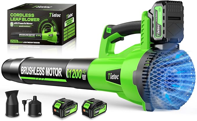 - ๐๐๐๐๐๐๐๐ ๐๐จ๐ฐ๐๐ซ๐๐ฎ๐ฅ ๐๐ซ๐ฎ๐ฌ๐ก๐ฅ๐๐ฌ๐ฌ ๐๐จ๐ญ๐จ๐ซ: Tietoc cordless leaf blower featuring an advanced brushless motor with a speed of up to 32000RPM, a maximum air volume of 735CFM, a maximum wind speed of 200MPH, it easily blows away damp fallen leaves, stubborn snow, and deep crevice dust, with a higher cleaning efficiency! In long-term high-intensity work, brushless motors can easily maintain low-temperature stable operation and have a longer working life!